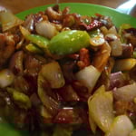 - Poulet sauté, avec oignons et poivrons. Malheureusement, que du cartilage. Ca doit être dans la façon de faire locale