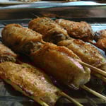 - Brochettes d'ailes de poulet. Peau craquante, cuisson correcte. Normalement, on n'utilise pas les mains en Chine, que les baguette. Pas très pratique donc, on en laisse.