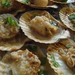 - St Jacques qui donnaient envie sur le menu (la photo était belle) : pas déçu, aussi joli en vrai, cuisson correcte, assaisonnement à l'ail au poil, mais les St Jacques étaient entières, non vidées. Autant de noix que de reste...