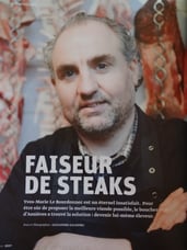 La star des bouchers français, roi de la bonne viande et pince de la maturation, et lui aussi parti à la recherche du meilleur steak du monde. Dans un film qui doit sortir à la rentrée 2014, Yves-Marie Le Bourdonnec a accompagné le réalisateur Franck Ribière dans un tour du monde où ils ont testé les viandes de plus de trente pays. S'il en a gouté de très bonnes, Yves-Marie Le Bourdonnec n'a toujours pas trouvé le Graal. Il explique à BEEF! pourquoi, selon lui, la meilleure viande du monde reste encore à inventer.