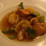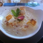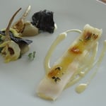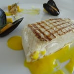 - Castagnole (comme le thon blanc), sauce au safran, courge gelée, moules, gelée de citron