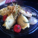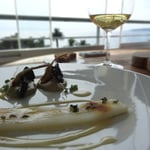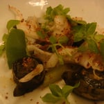 - Tagliatelle de calamar, déclinaison d'artichaut (chips, purée, morceau de cœur, poêlé)