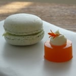 - Café + macaron de verveine, gelée à la tomate, bâton de chocolat, madeleine au citron
