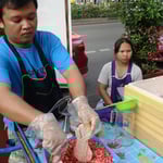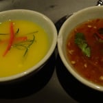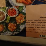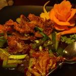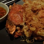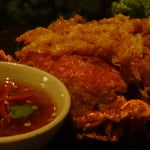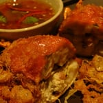- Crabe mou grillé, dont l'intérieur est garni de chair de crabe et de porc, accompagné de deux sauces (mangue fraîche à la citronnelle, et sauce sweet & sour)