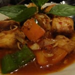 Tous les plats nous plaisent, sont consistants, et arrivent dès qu'ils sont prêts, ce qui fait que la table devient vite petite. Sympa, mais certains du coup refroidissent. Crabe mou délicieux et original, surtout quand on croque à pleine dent sa tête, ou ses pattes entières. Un régal. Cadre reposant et romantique, service constant, avec un ou deux petits plus, comme lorsque le serveur nous raccompagne à la porte et propose de nous prendre en photo devant l'entrée.