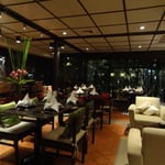Le restaurant n'est pas aisément accessible, mais les infos données sur Trip Advisor sont claires. Jardin extérieur, ambiance chaude, calme et légèrement luxueuse, notre table nous attend. Service au début moyennnement aimable, puis de bonne facture, avec un deuxième serveur qui prend le relai et vient nous expliquer les différents plats, leur spécificité, et suggérer plusieurs choses après la question classique "qu'est-ce que vous prendriez et pourquoi ?", en regardant si son choix porte sur le plat le plus cher. Nous prenons deux cocktails parmi la dizaine de choix, plutôt originaux.
